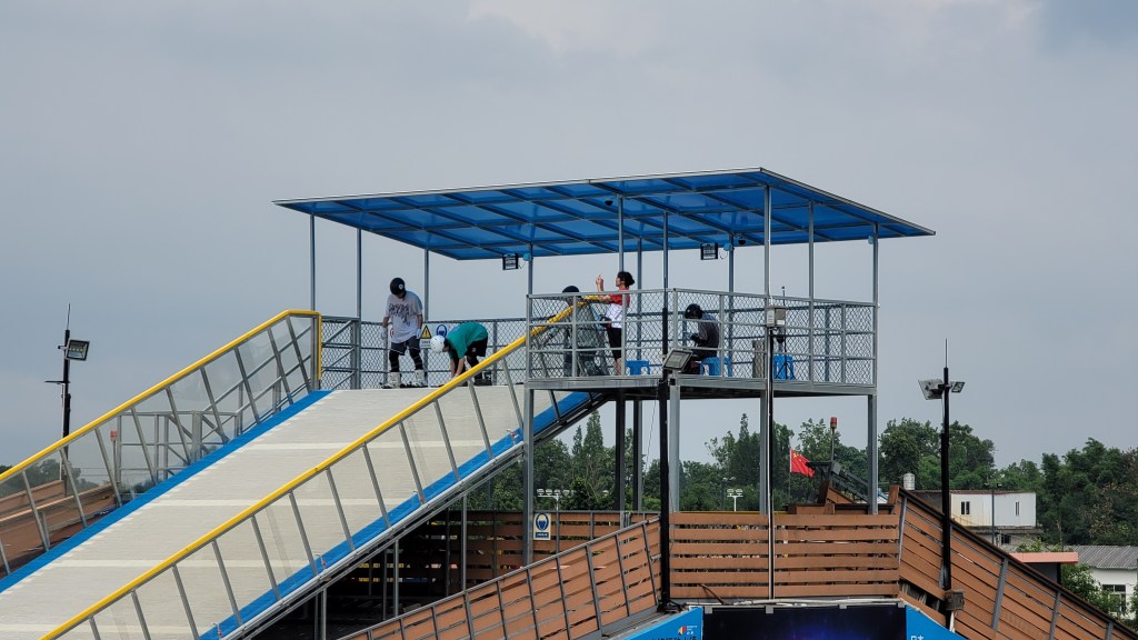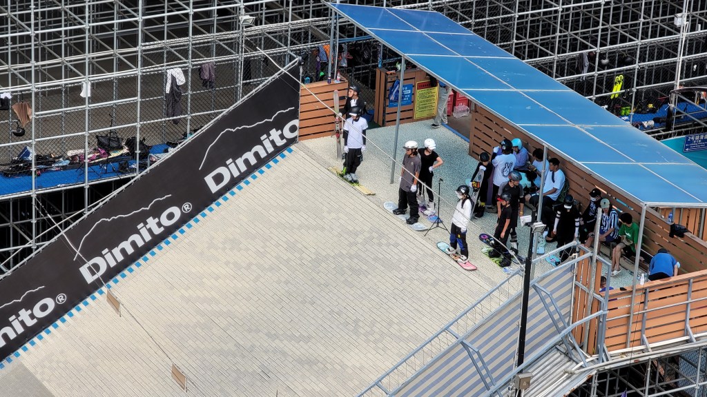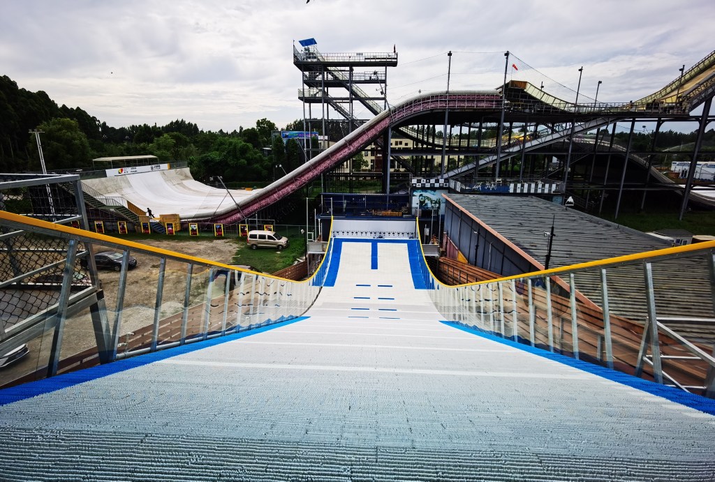 The slope uses JF dry ski Enoki mat, and the air bag is a “straw” air bag. Athletes reach the starting platform through a magic carpet.